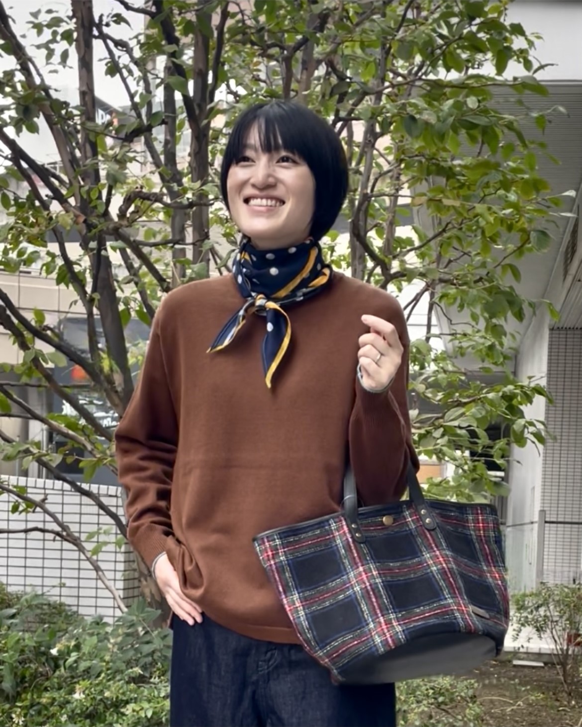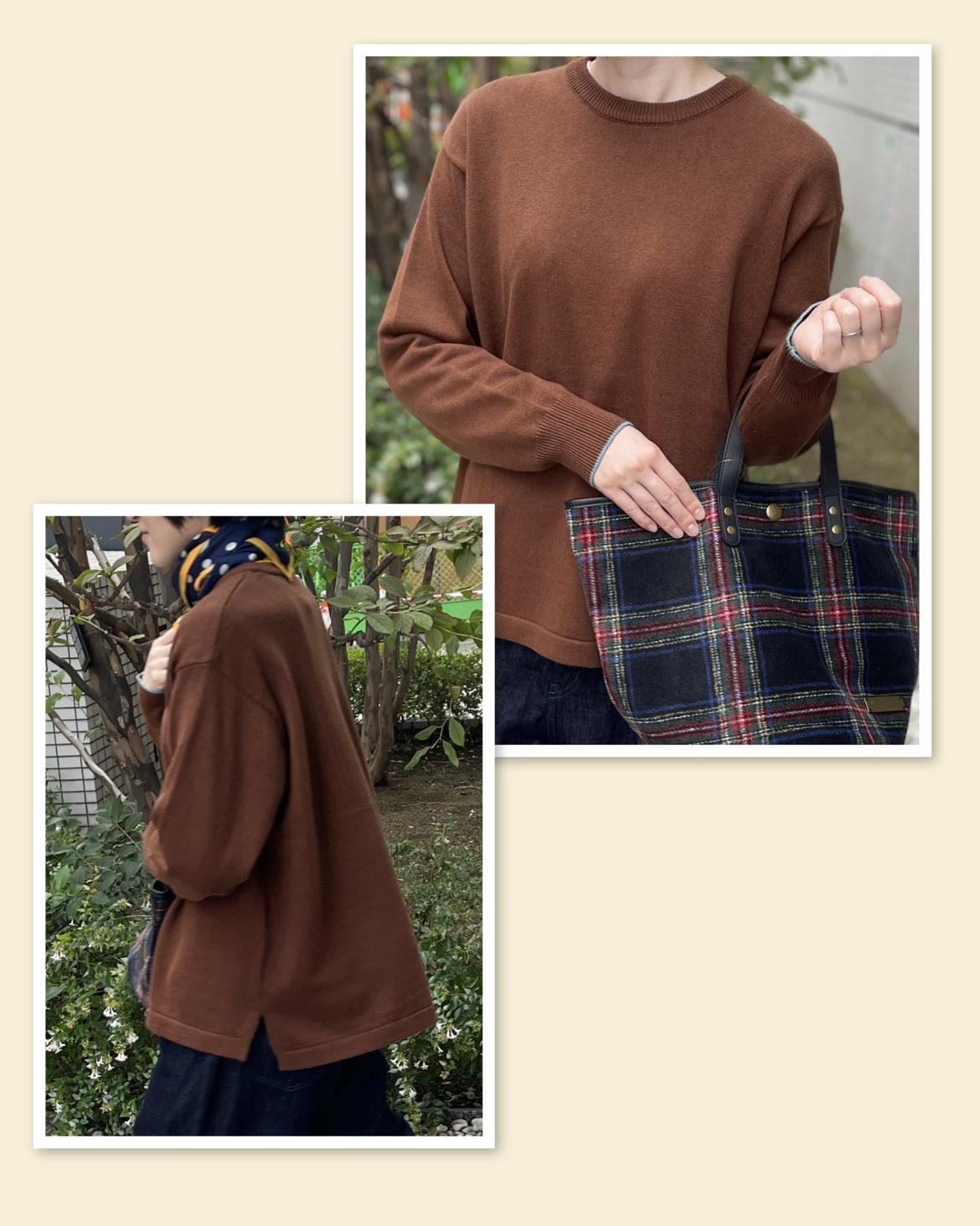 ゆったりしたサイズ感なのでインナーとの重ね着もOK、柄物ストールなども相性ばっちりです!