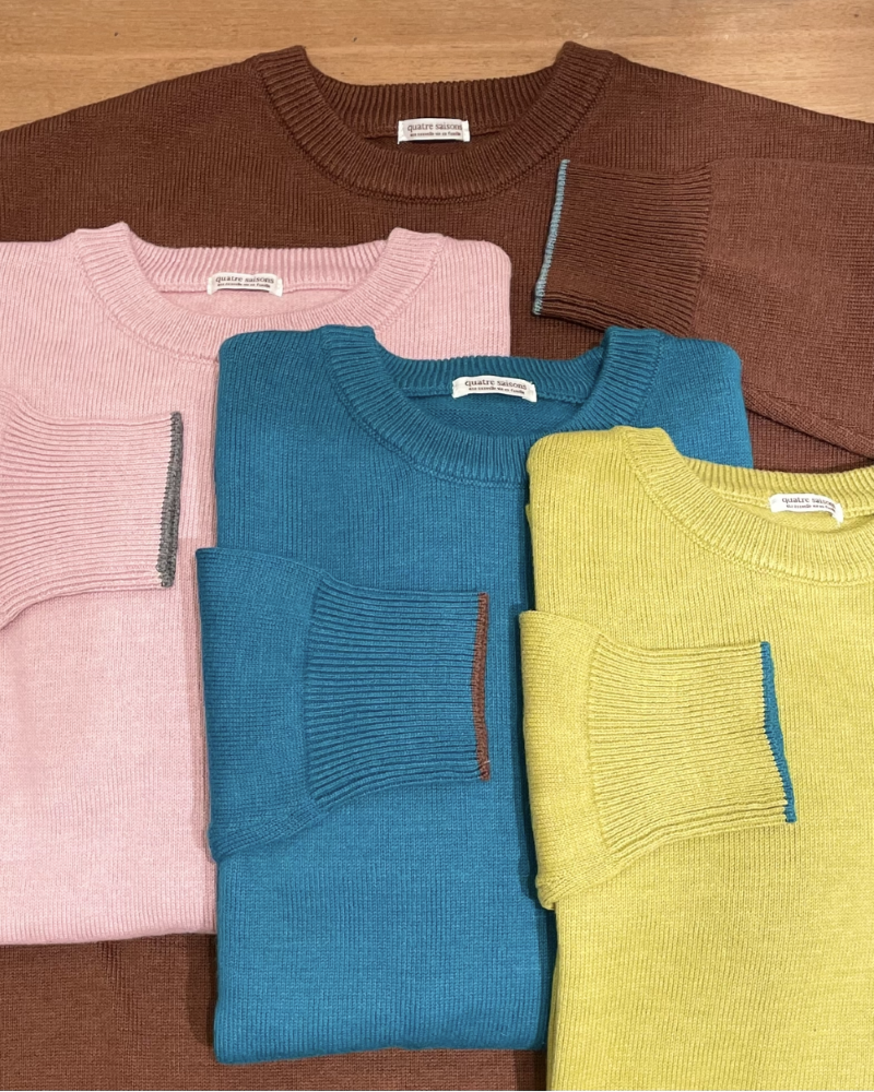 程よい厚みが少し肌寒い時にちょうどよく、袖口に少し入った配色カラーがアクセントになっています。