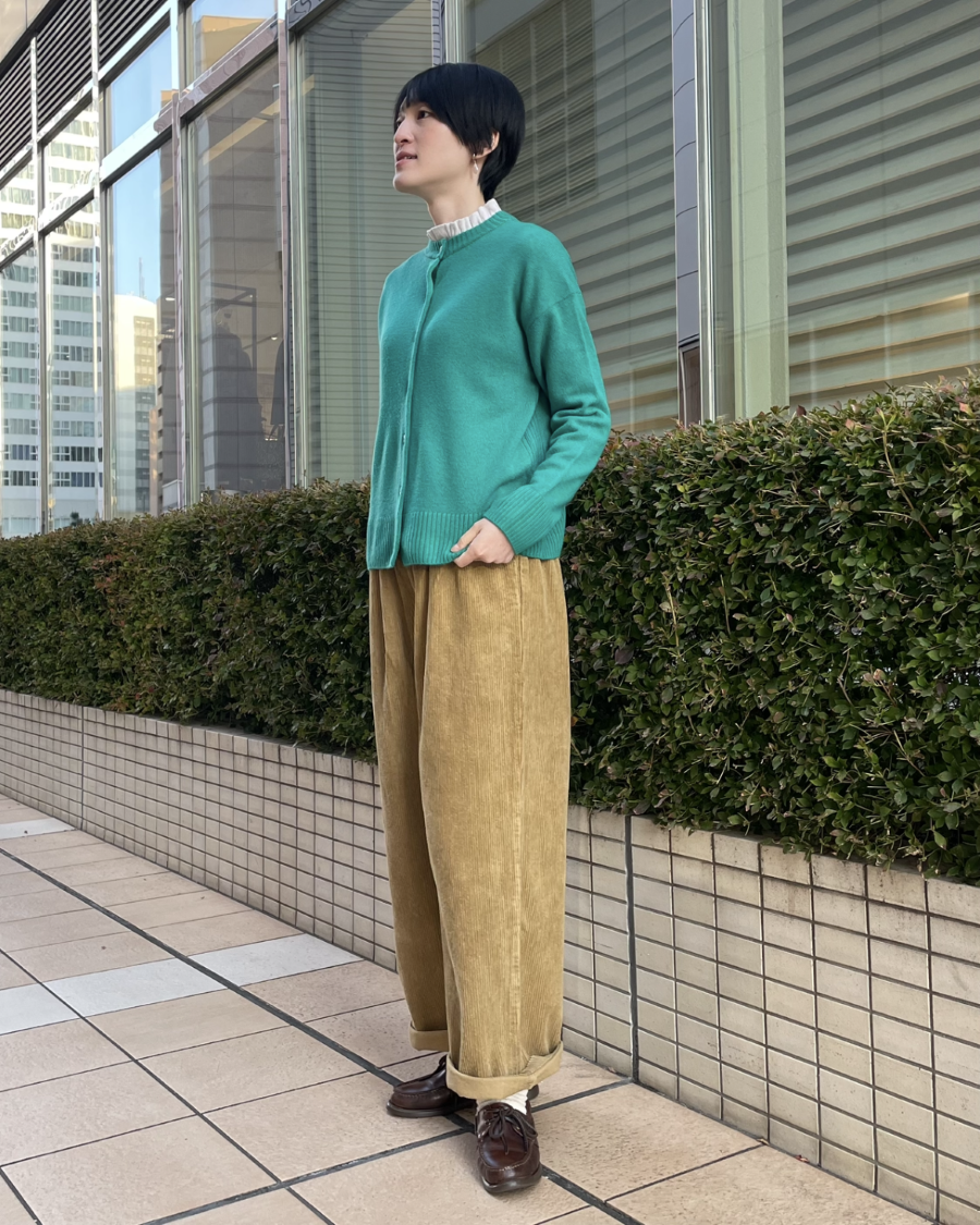 いっしょに着用したのは、コーデュロイ生地のボトムス。
