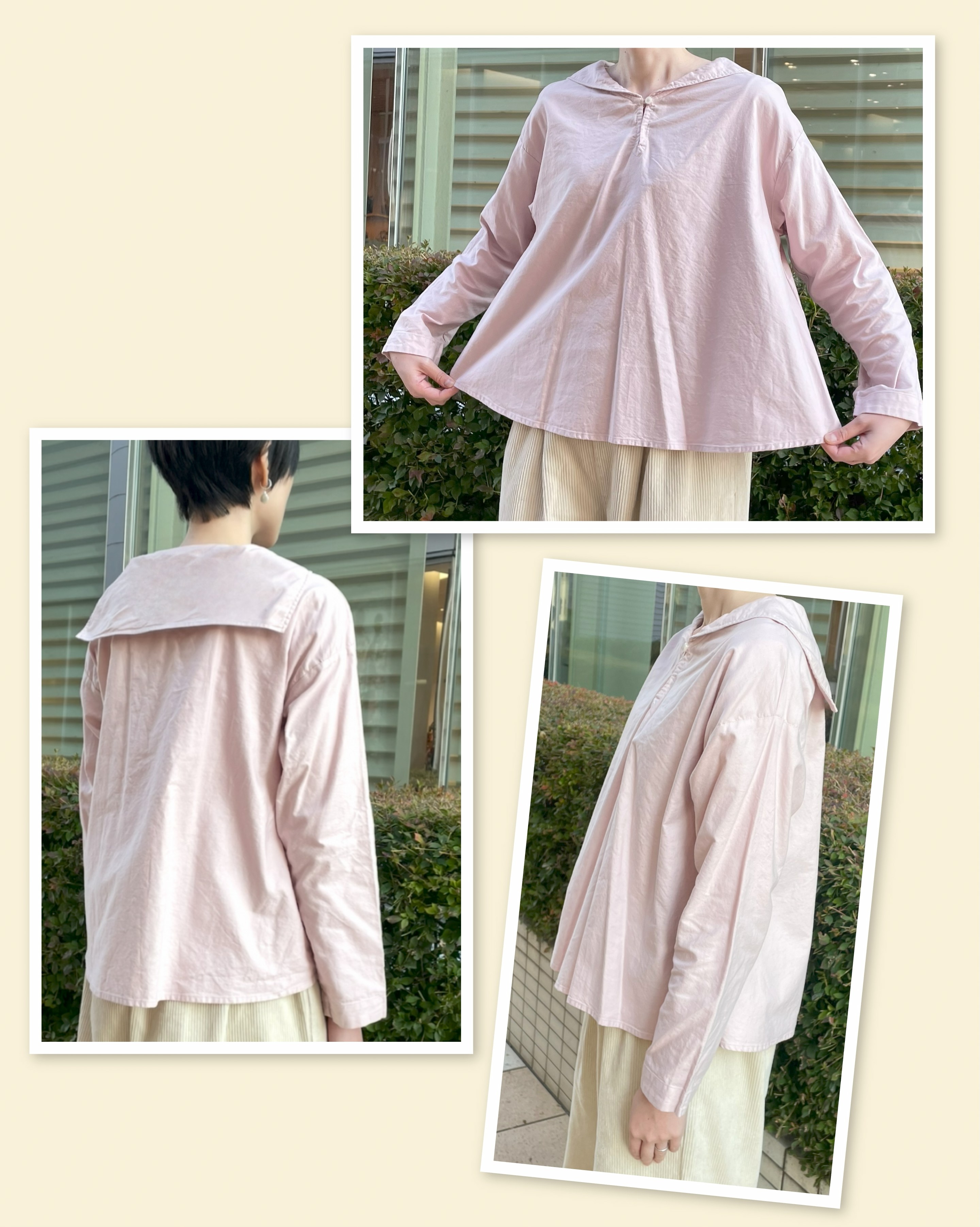 こちらは、重ね着におすすめのセーラーカラーがポイントになったシャツ。