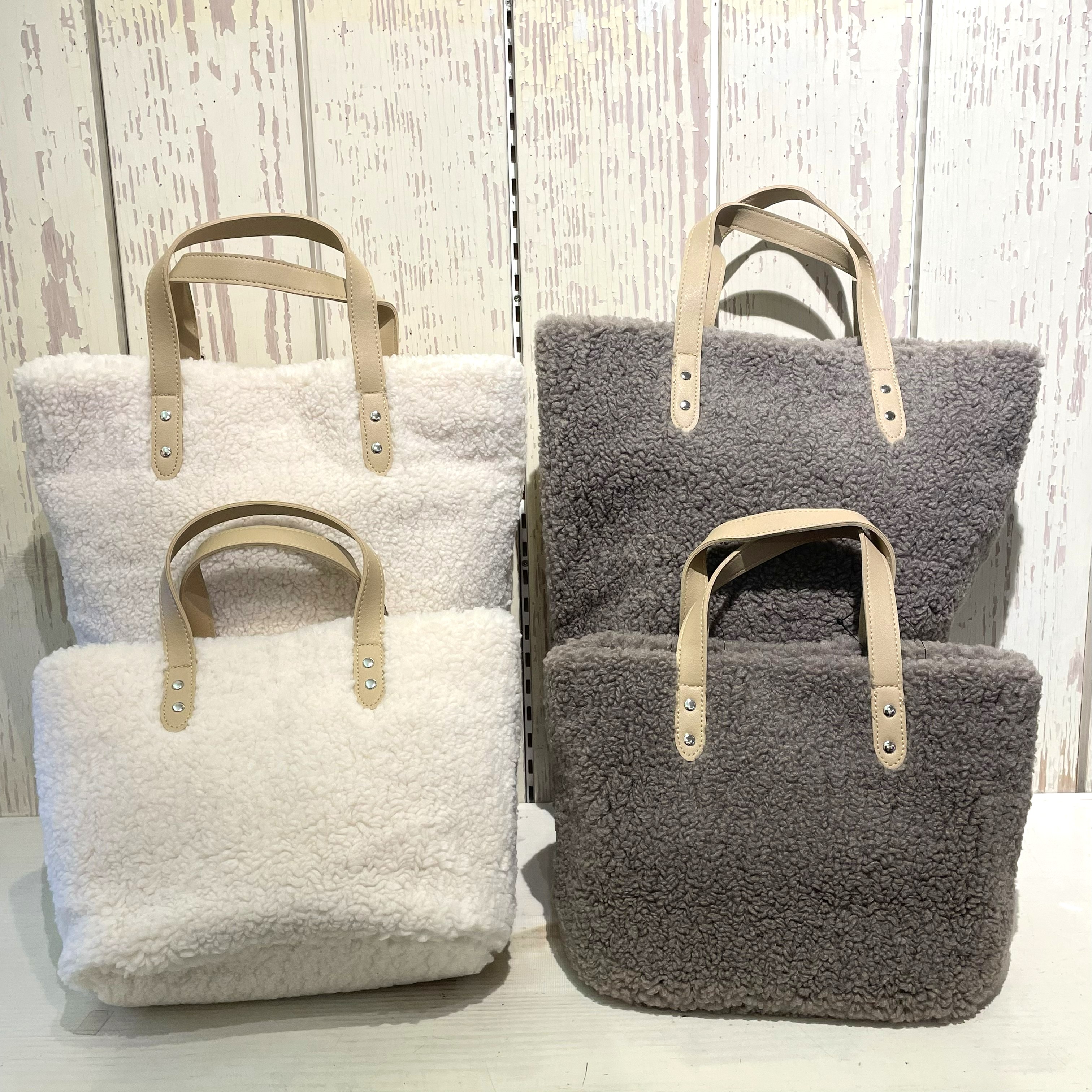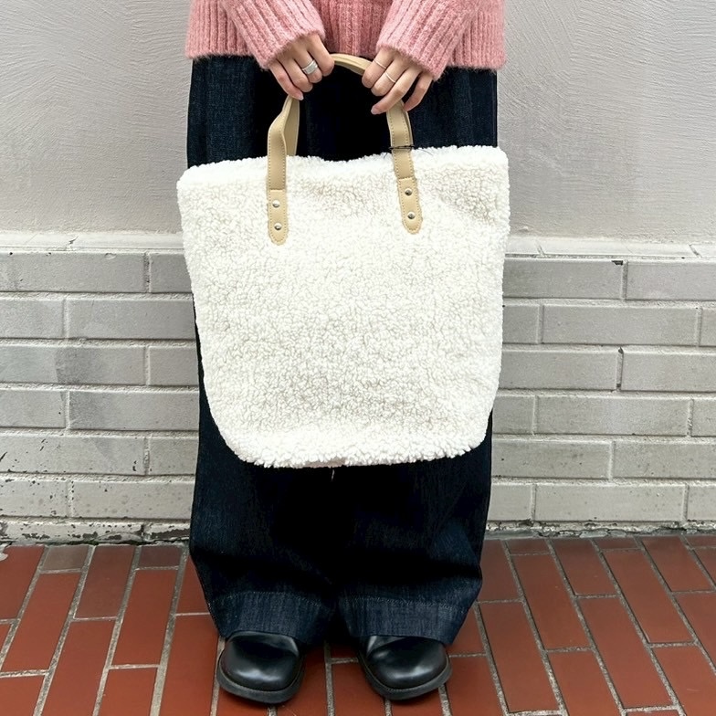 ふんわりあたたかい冬の着こなしにぴったりのボアトート。サイズは2サイズ展開でどちらも使いやすいサイズ感です。