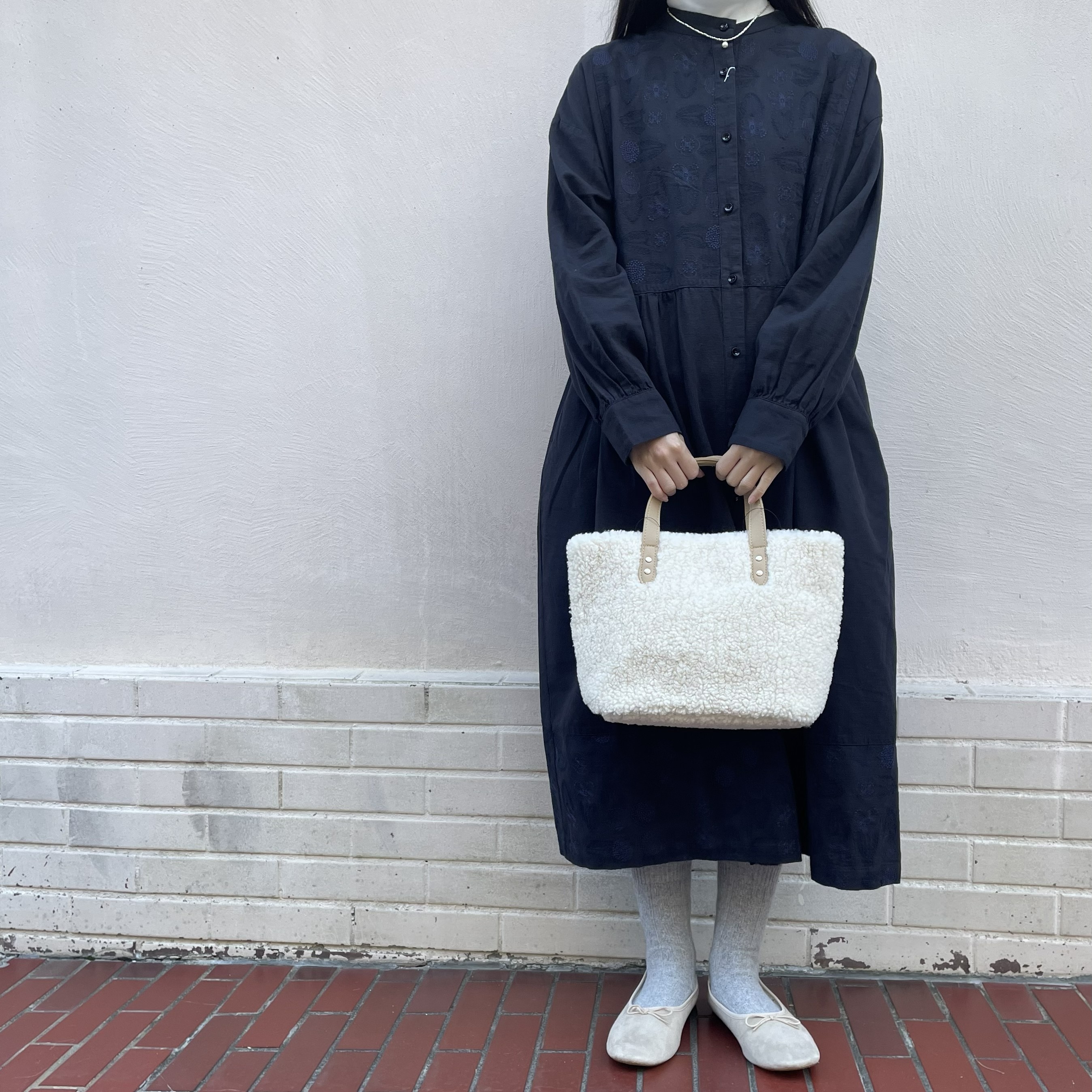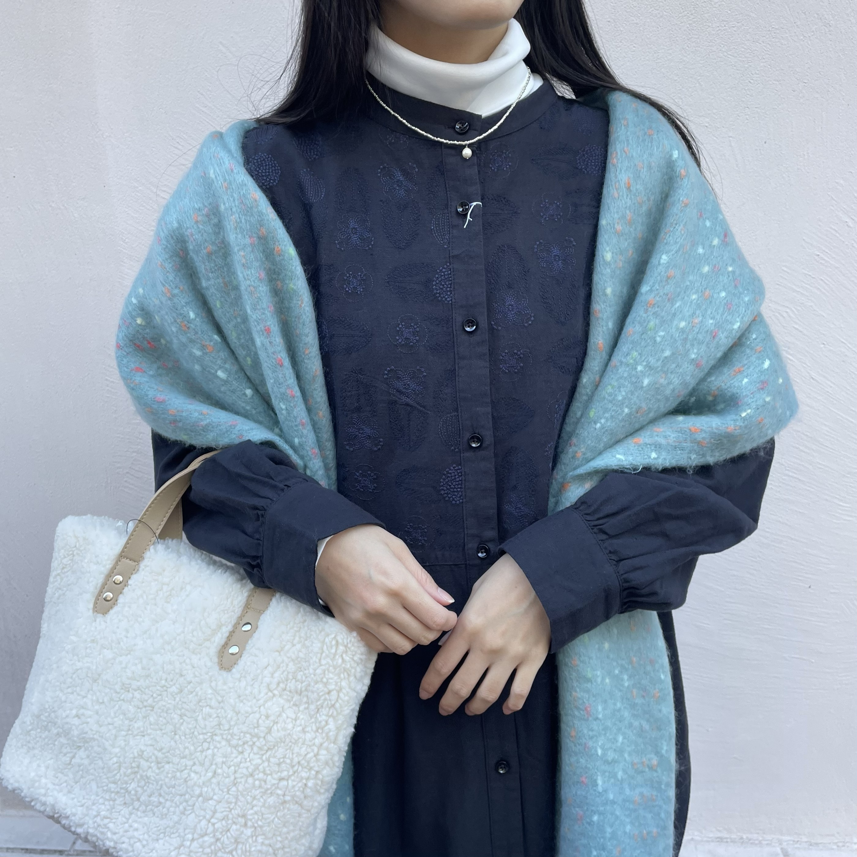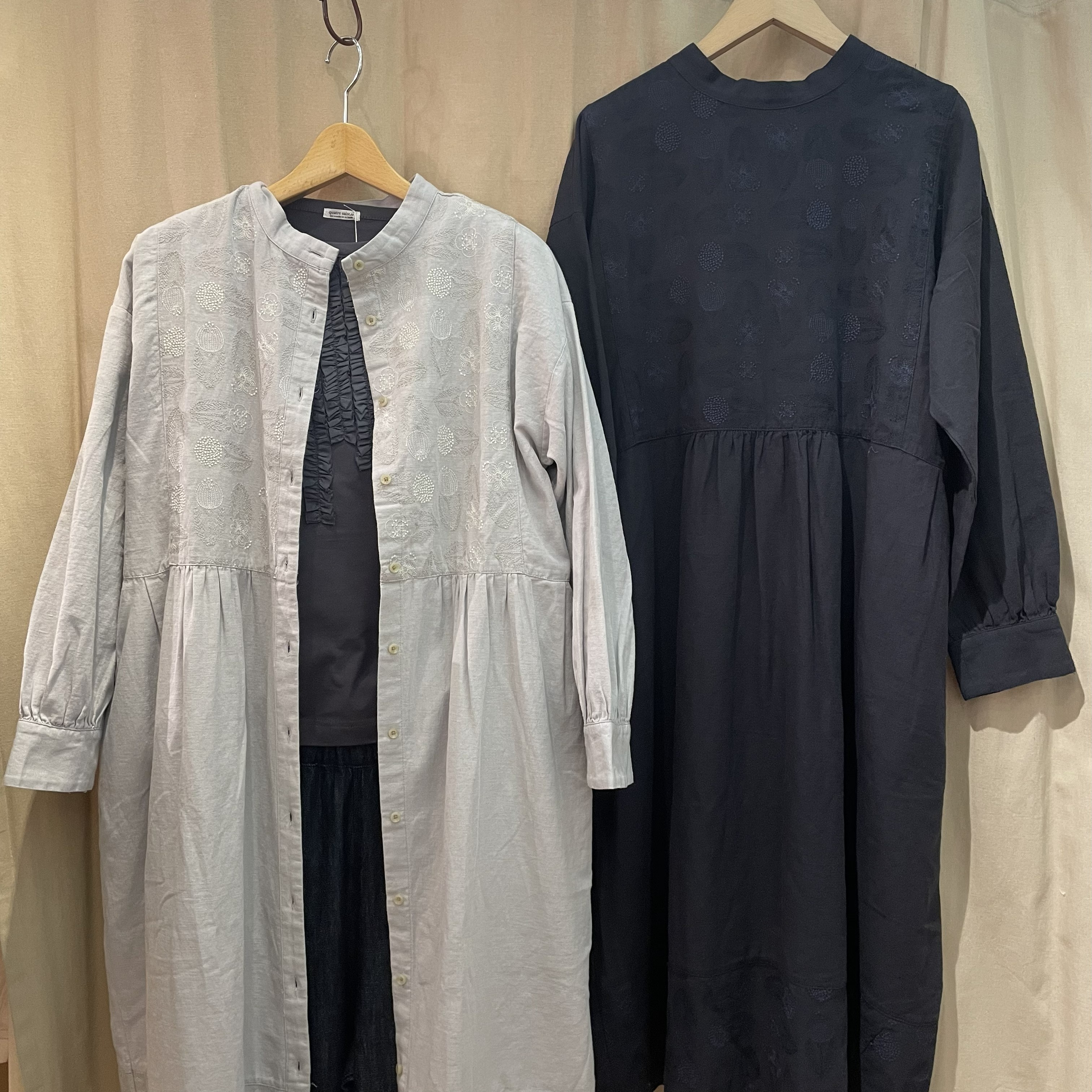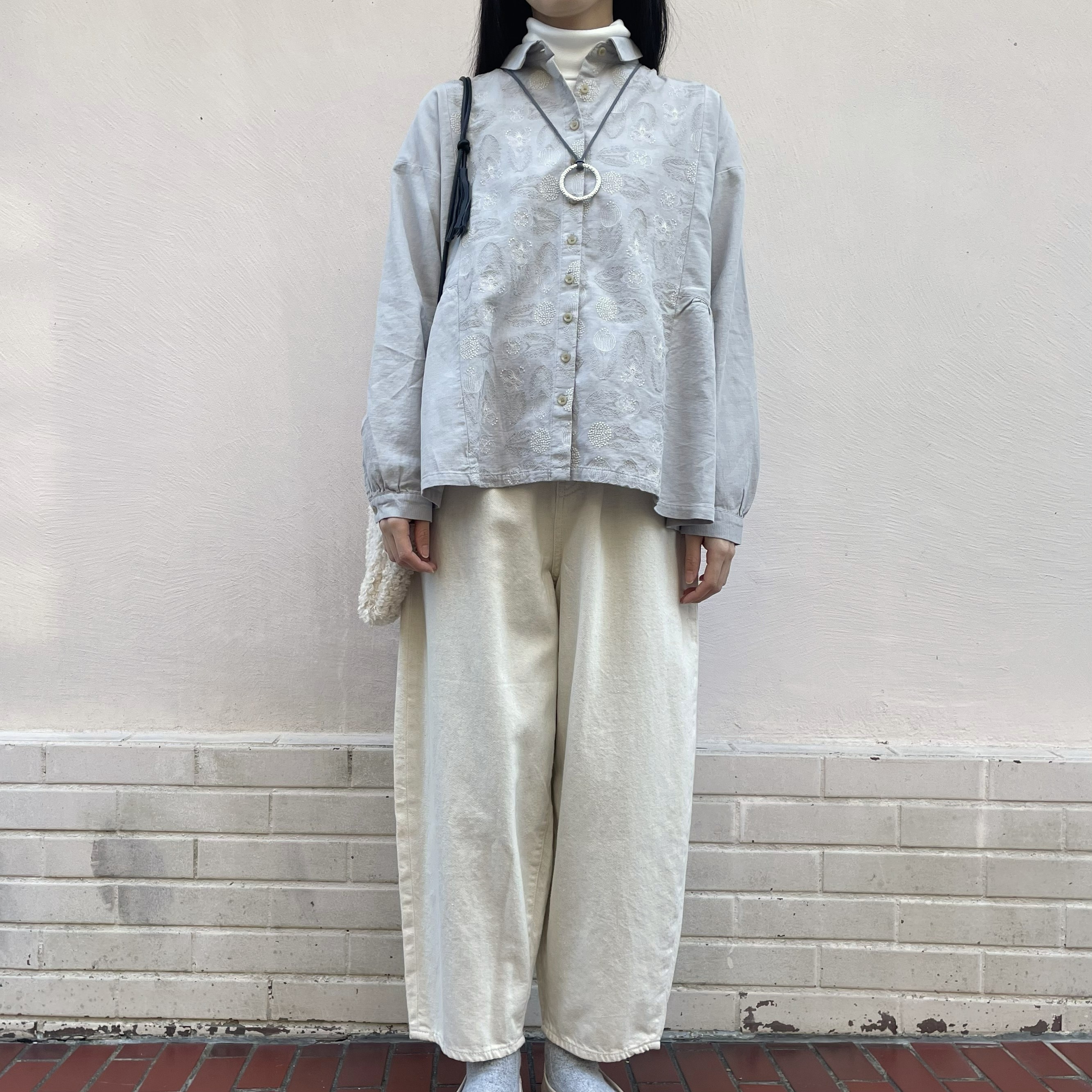 カーディガンを羽織っても刺繍が隠れないデザインです。