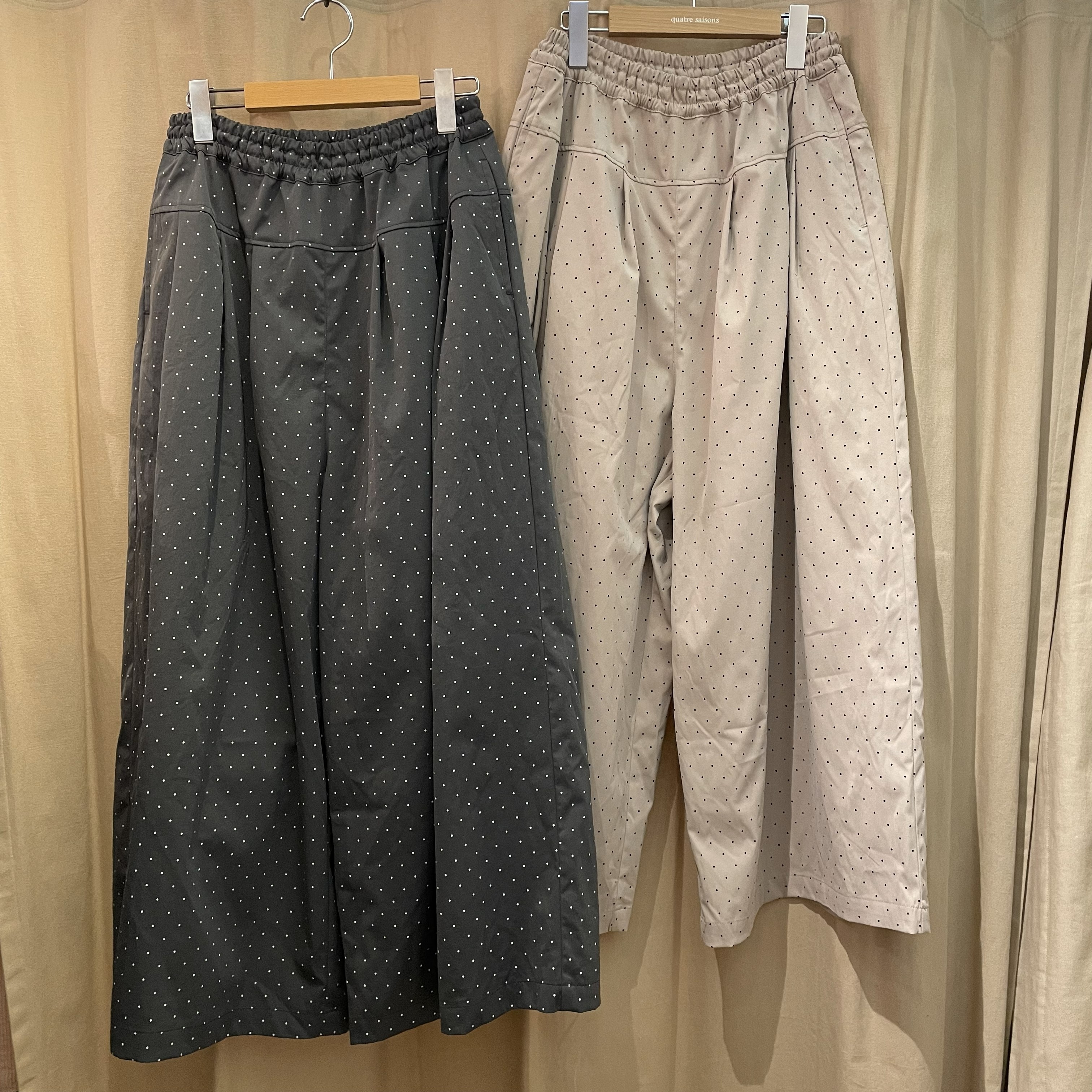 タックパンツは、切替下にタックを寄せてワイドに仕上げています。ワイドなシルエットですが、広がりすぎずすっきりと穿けます。