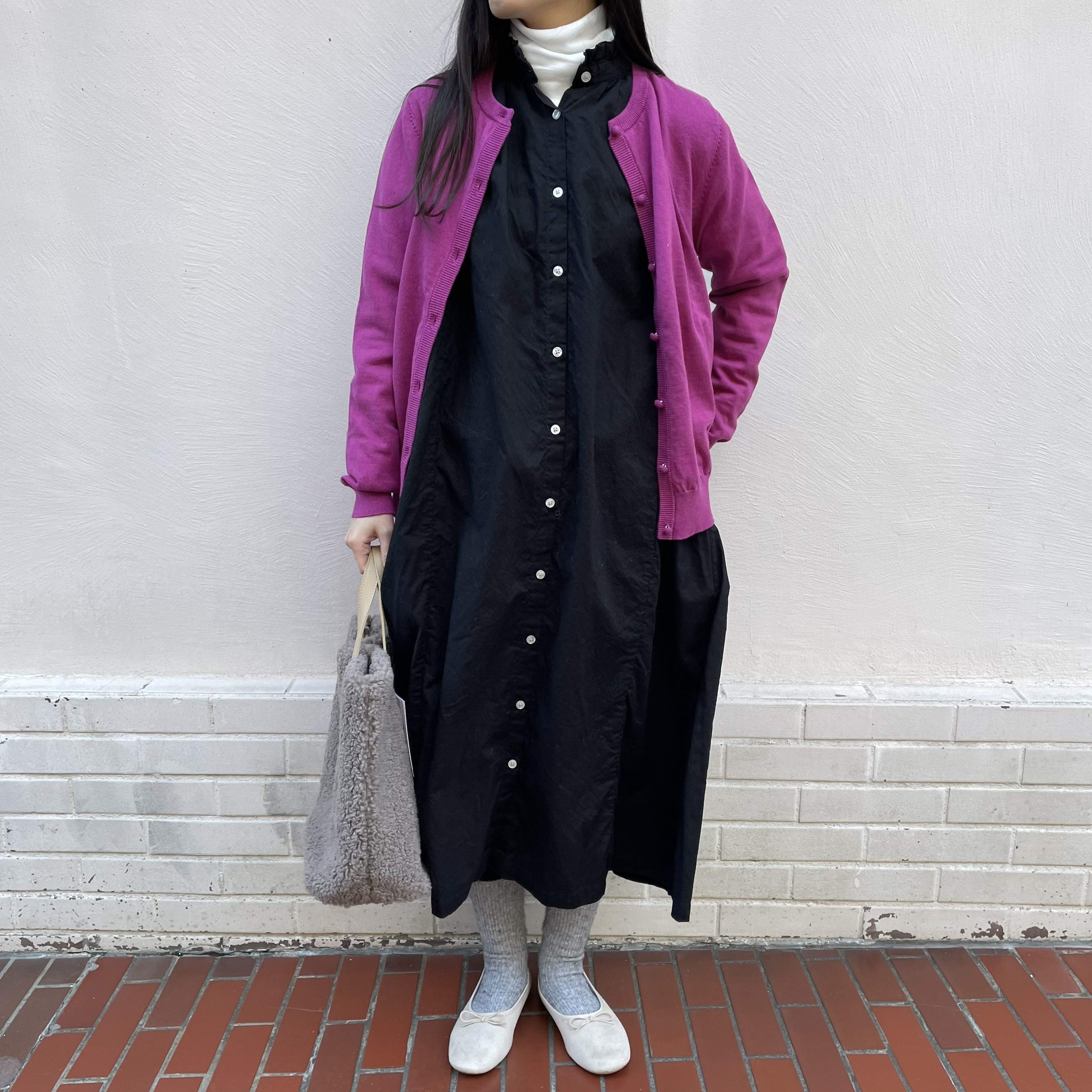 通年着られる厚みのコットン素材を使用しているので、まだ寒い時期でもカーディガンなどを羽織って着られます。