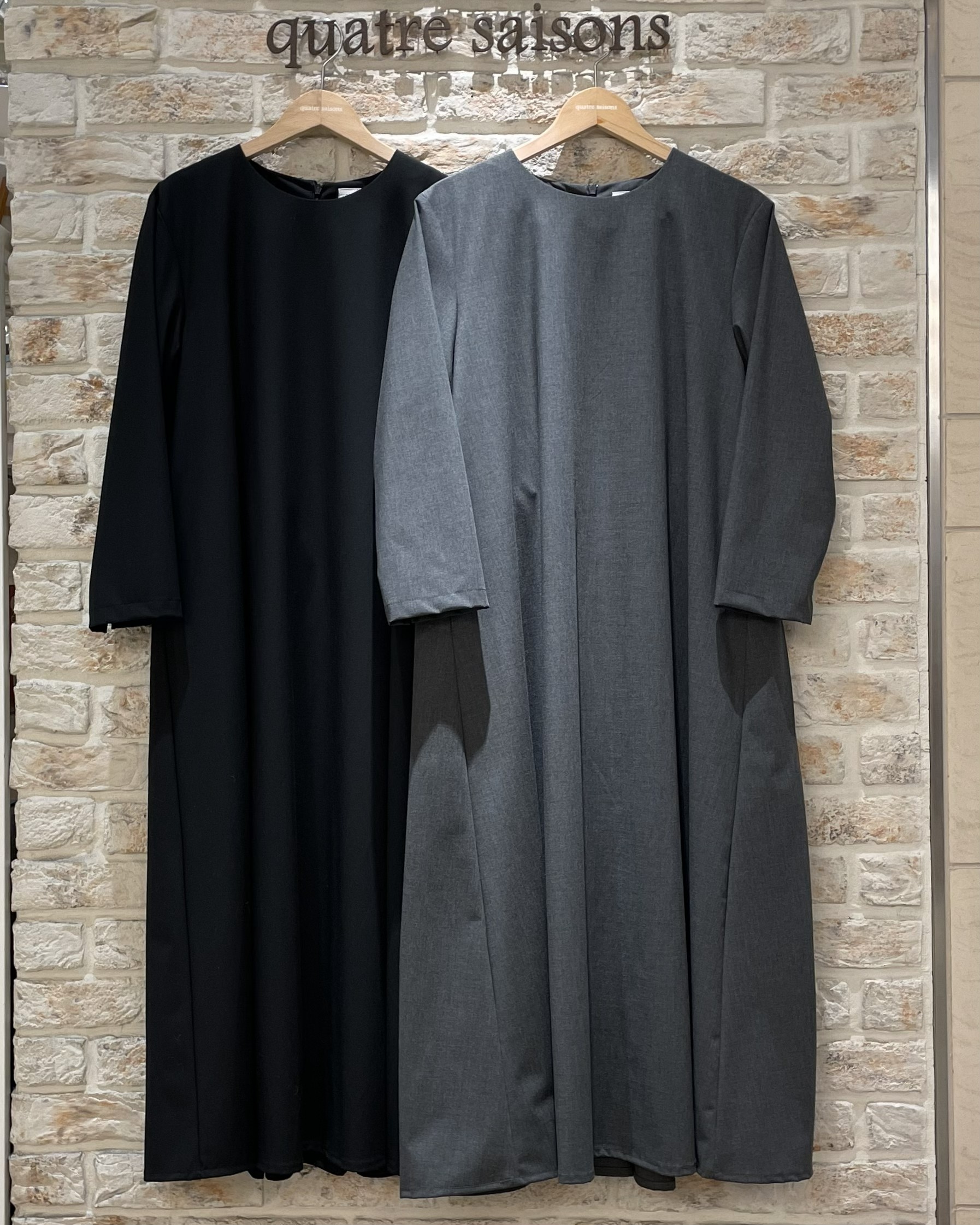 程よくハリがあり、表面はしなやかな風合いで毛羽が少なくクリアな生地で、裾に向かってふんわり広がるAラインのシンプルなワンピースです。