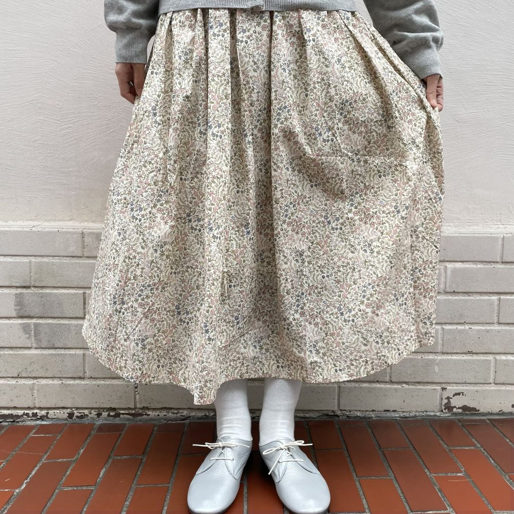 可愛らしい花柄のスカートはコーディネートを華やかにしてくれます。