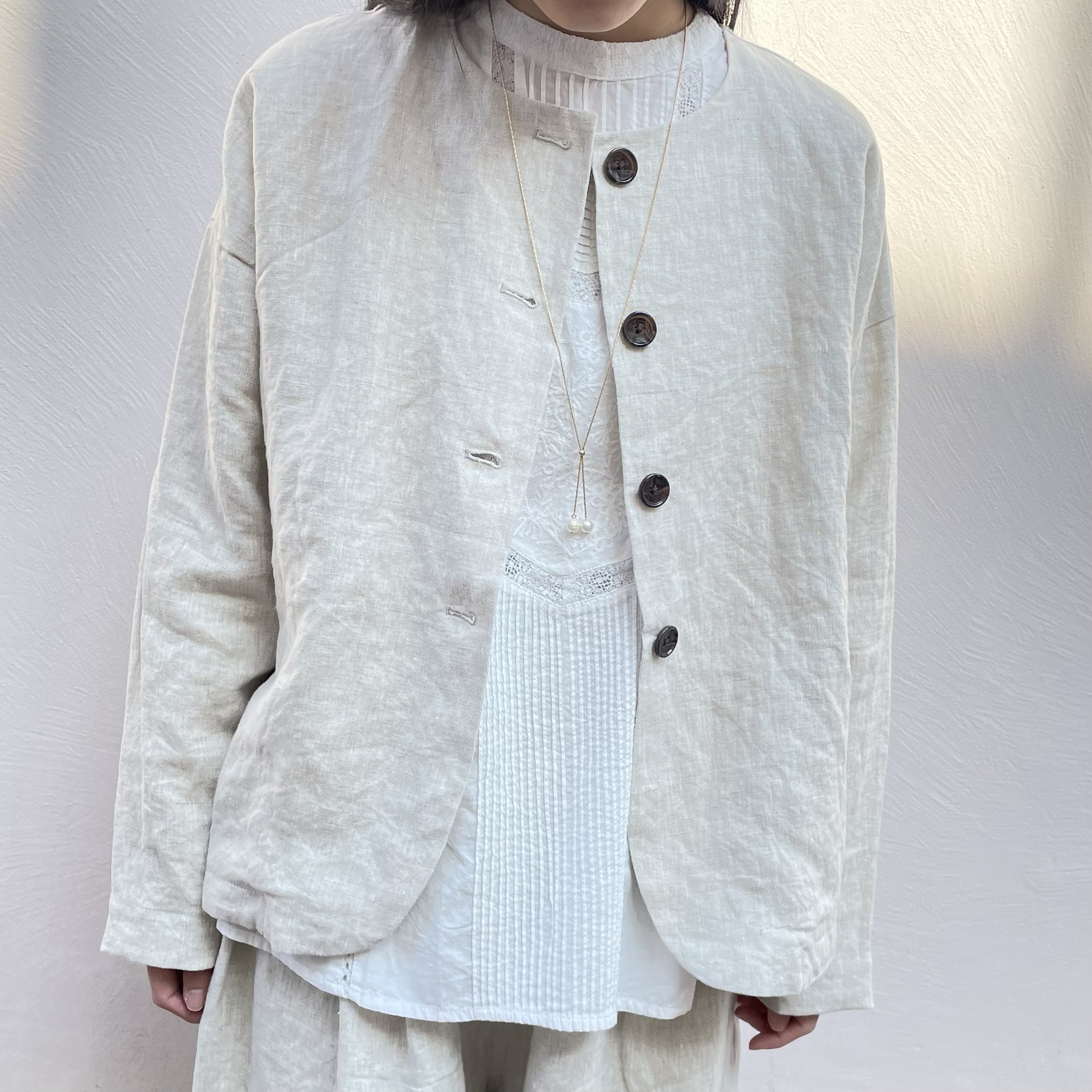 リネンノーカラージャケット