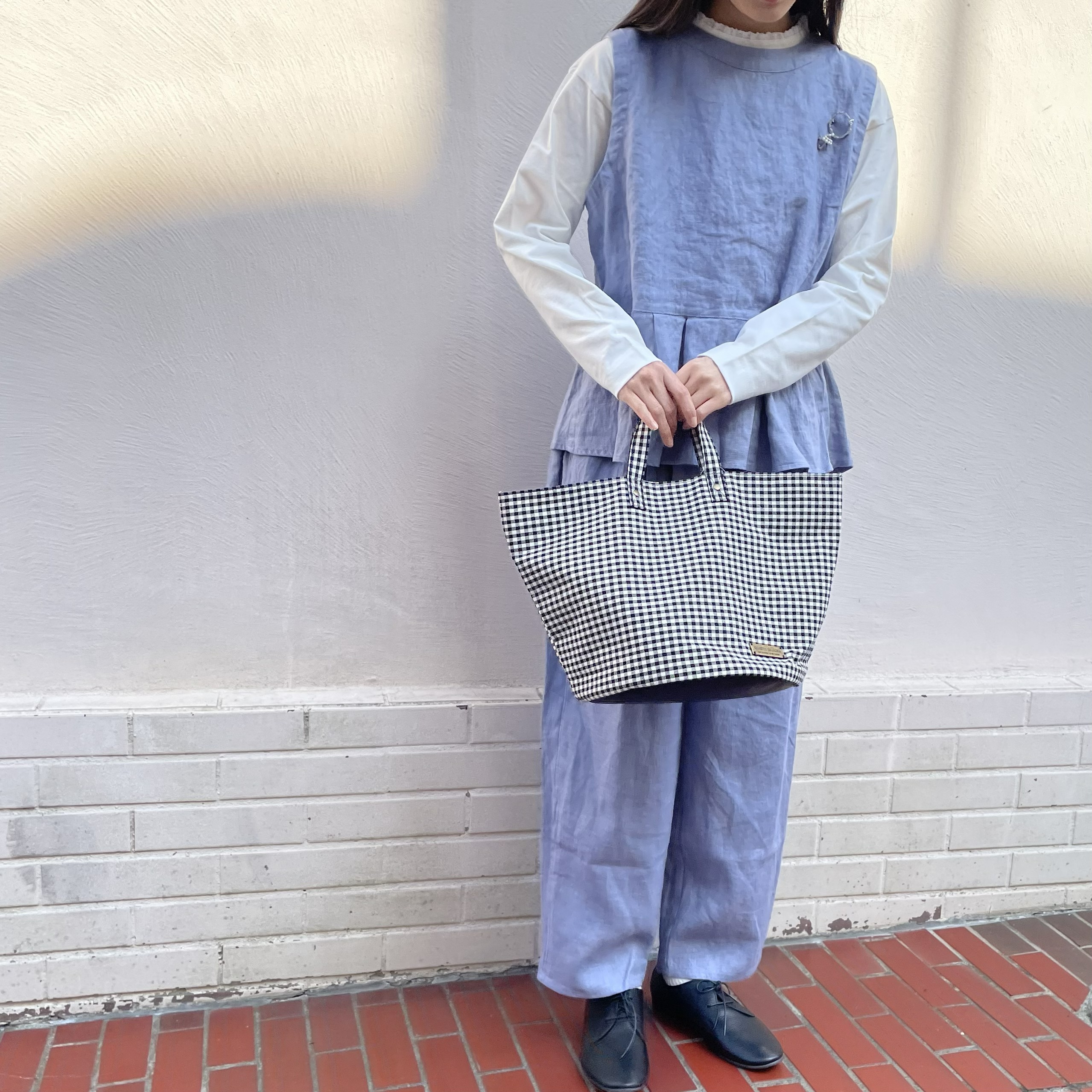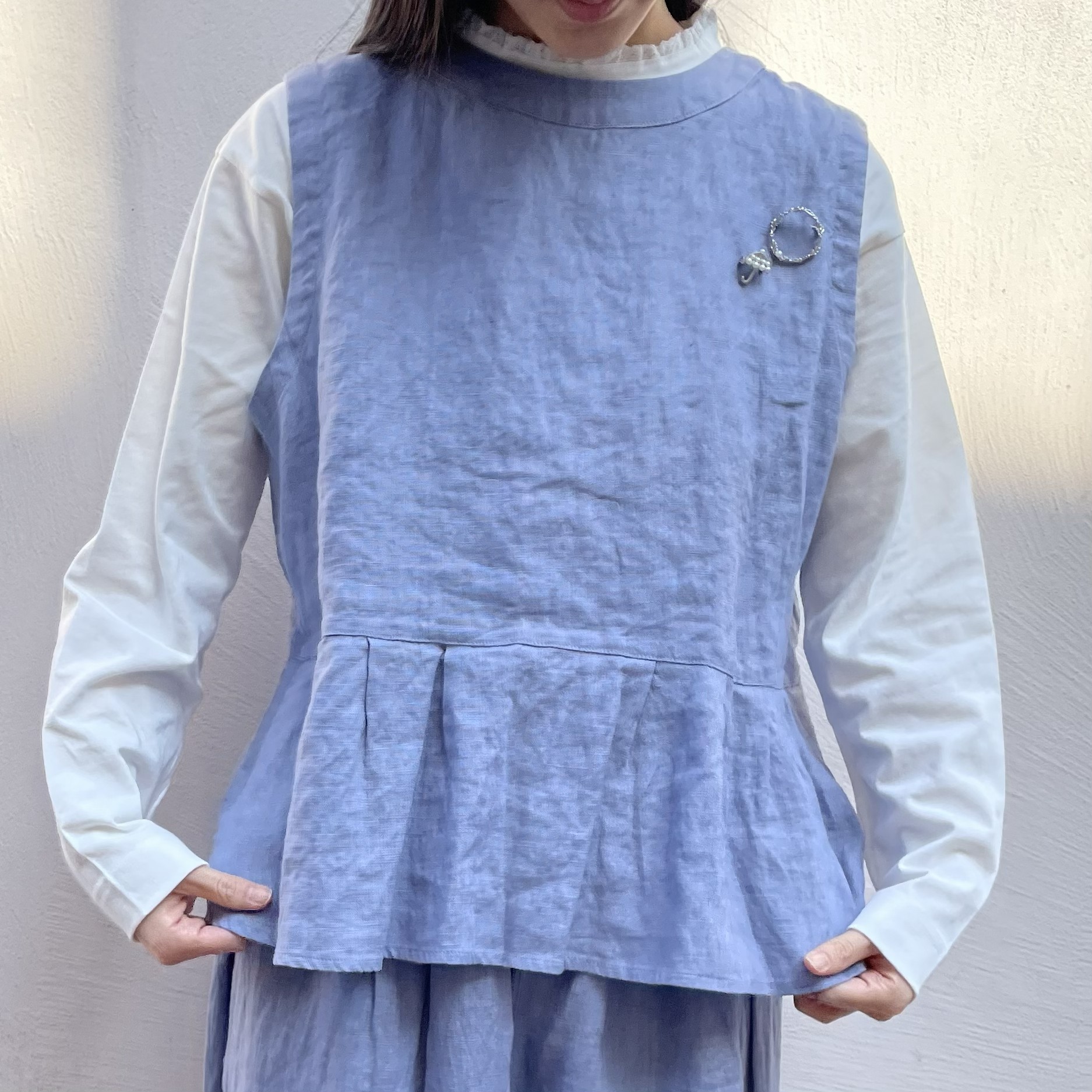 袖がふわっとしたデザインになっているので、ベストやオーバーオールなどとのコーディネートにもおすすめです。
