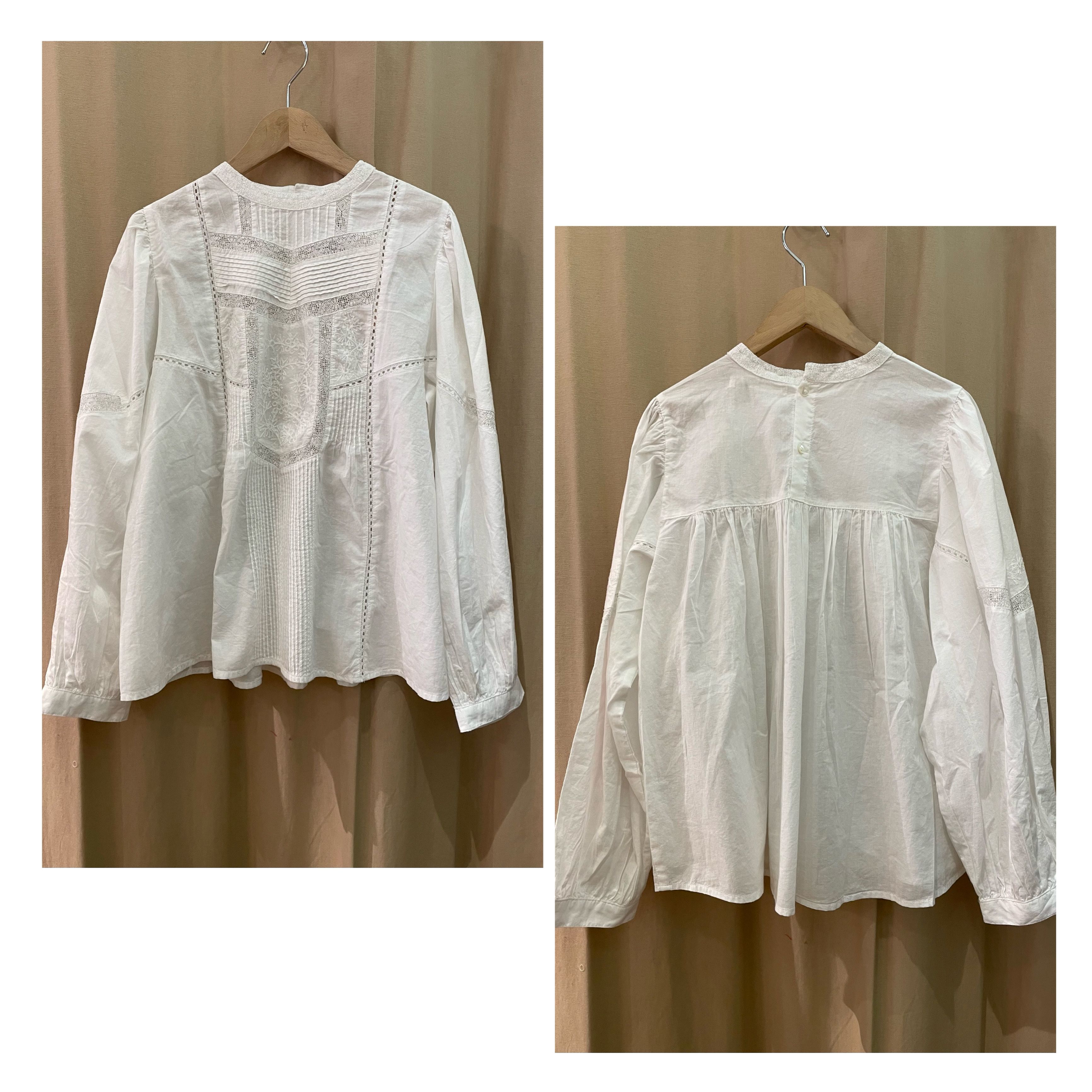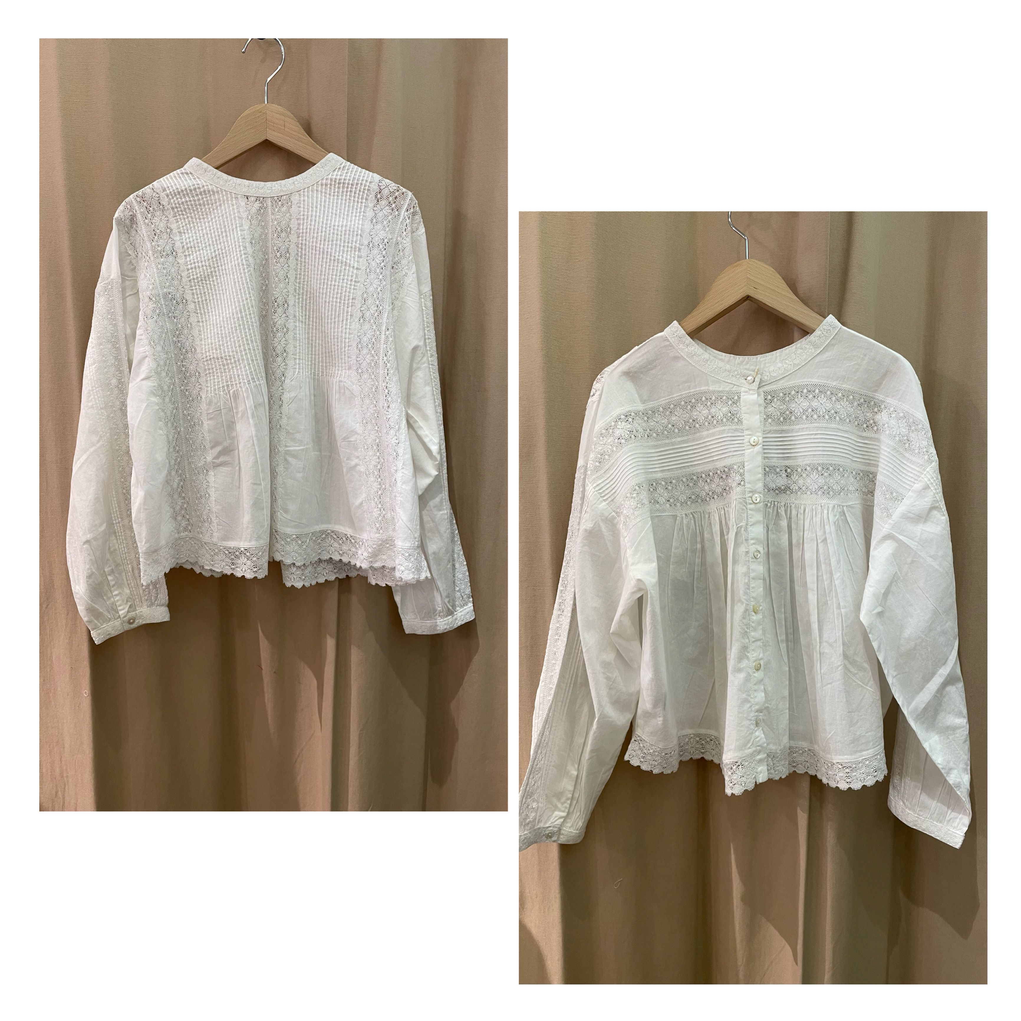 そんなリバーレースを贅沢に使用したブラウスはまるでアンティークブラウスのようで、見るだけでうっとりするようなデザインです。