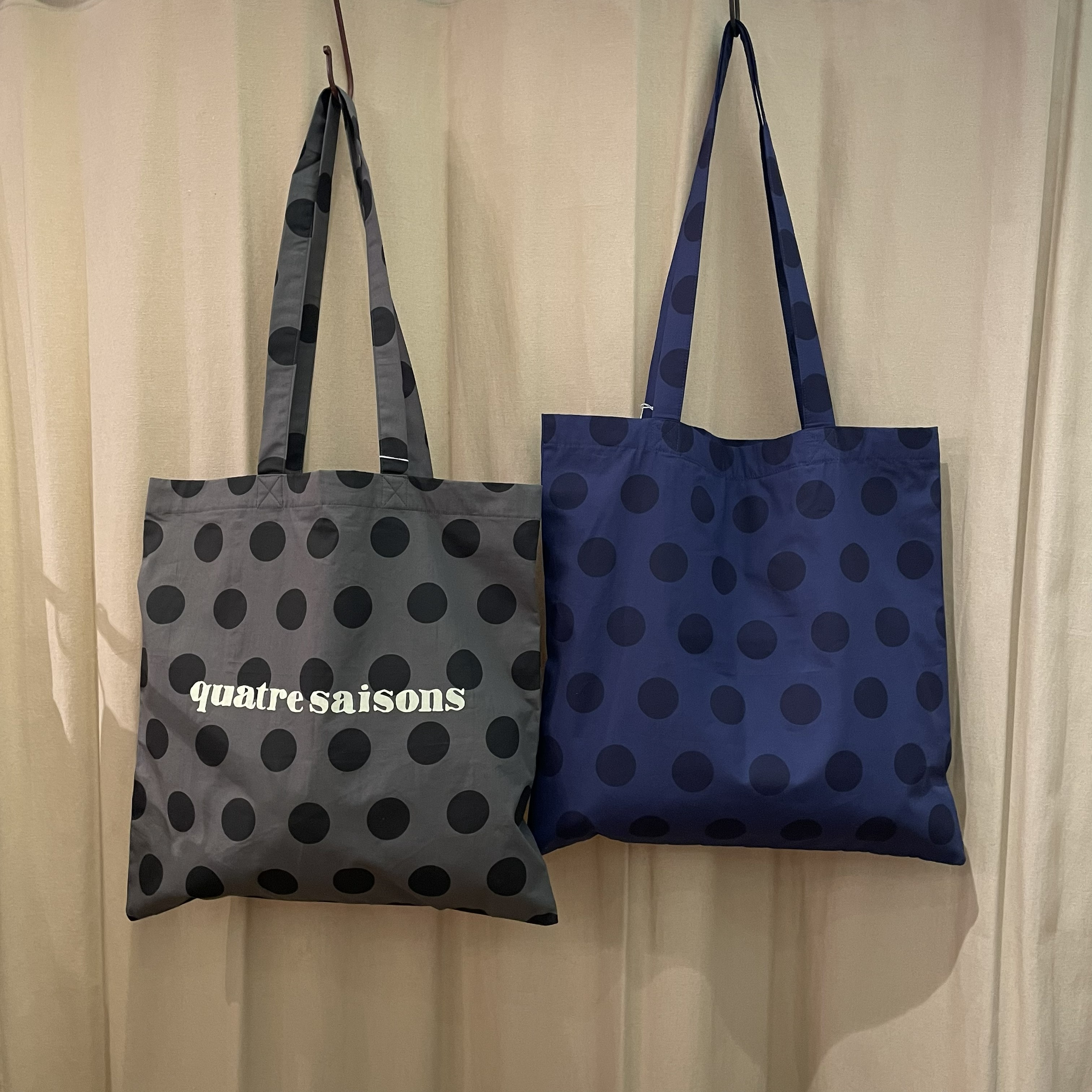 マチ無しのすっきりと仕上げたトートバッグ。表中央にキャトルセゾンのロゴをプリントしてあるのがポイントです♪
