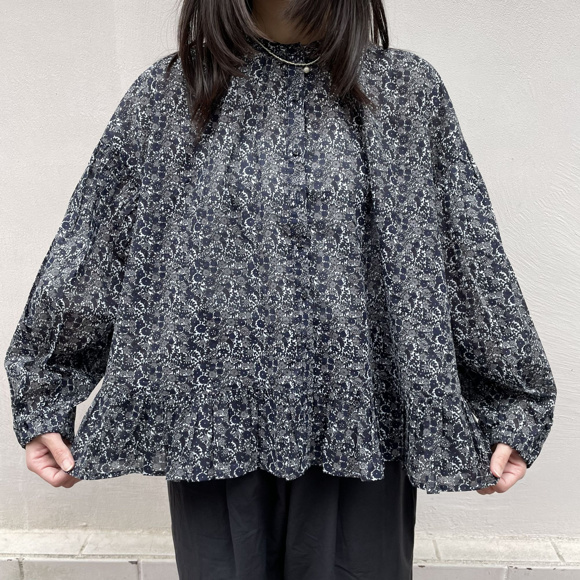 落ち着いた小花柄が着やすくも着こなしのアクセントになること間違いなしです。