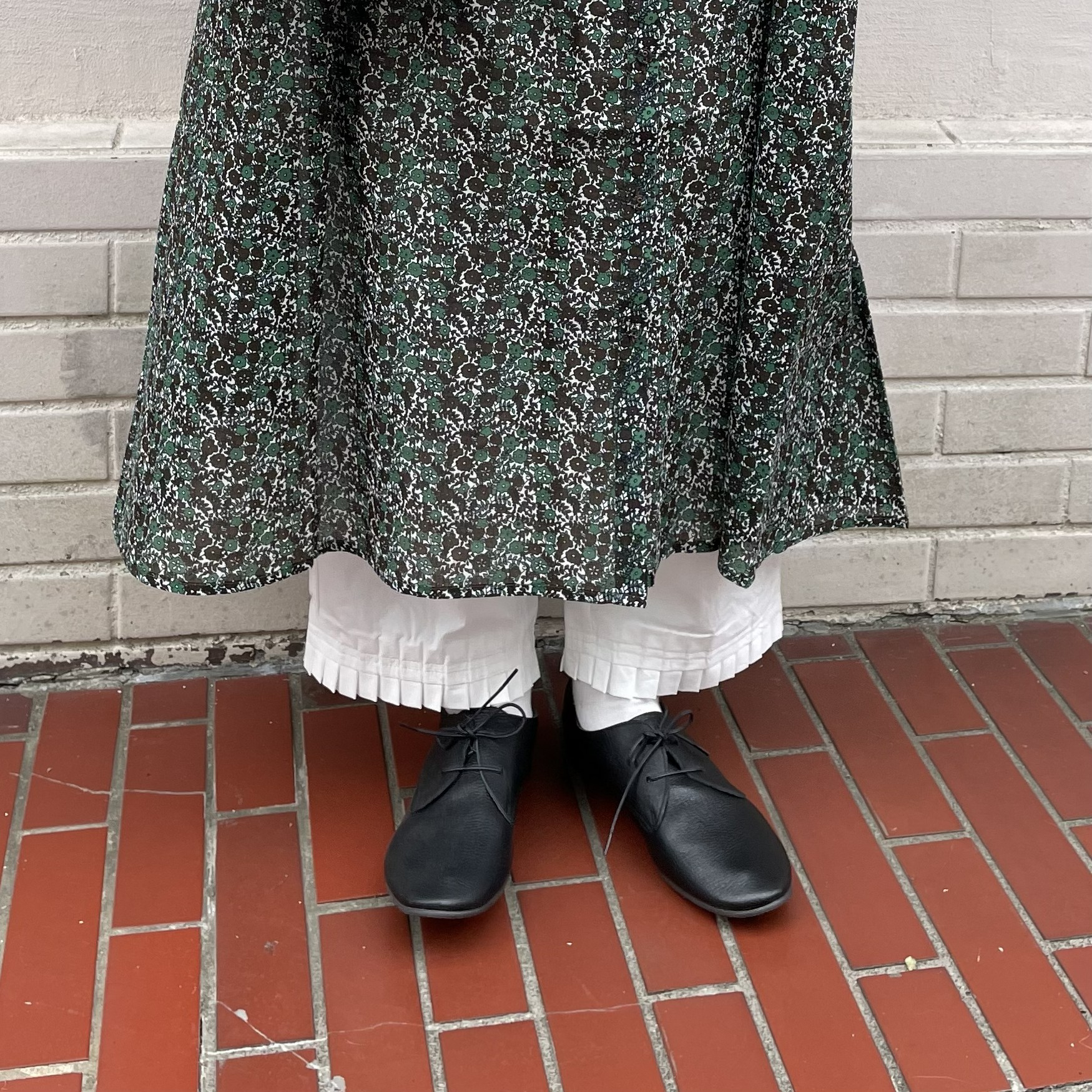 プリーツでポイントになっているので、ワンピースの下からちらりと裾を見せる着こなし方もおすすめです。