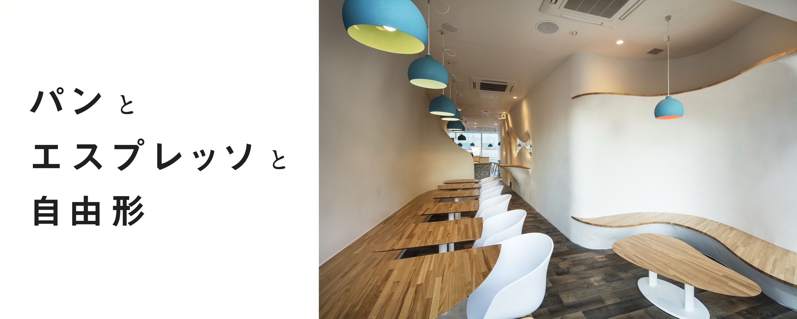 雲をイメージした流線形の壁や、温かみのある木製テーブル、テラス席を含め「自由さ」を感じさせる空間