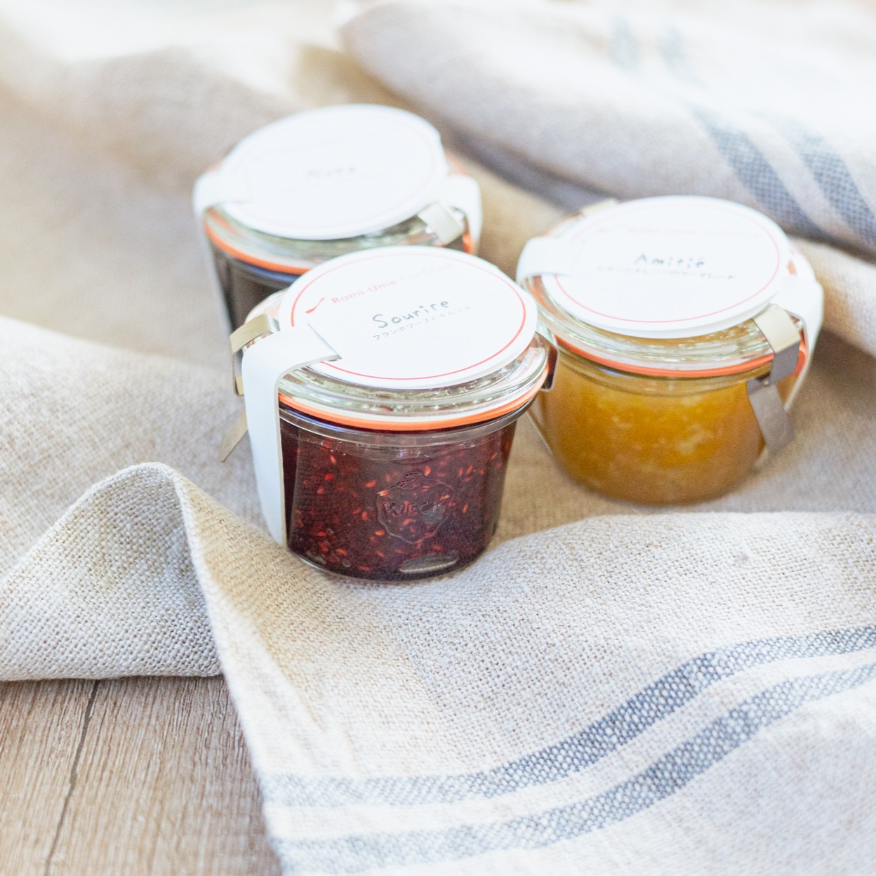 キャトル・セゾン・トキオ店舗限定で、ロミ・ユニコンフィチュールで人気の4種類のジャムを今回のイベント限定のWECK瓶に詰めて販売します。