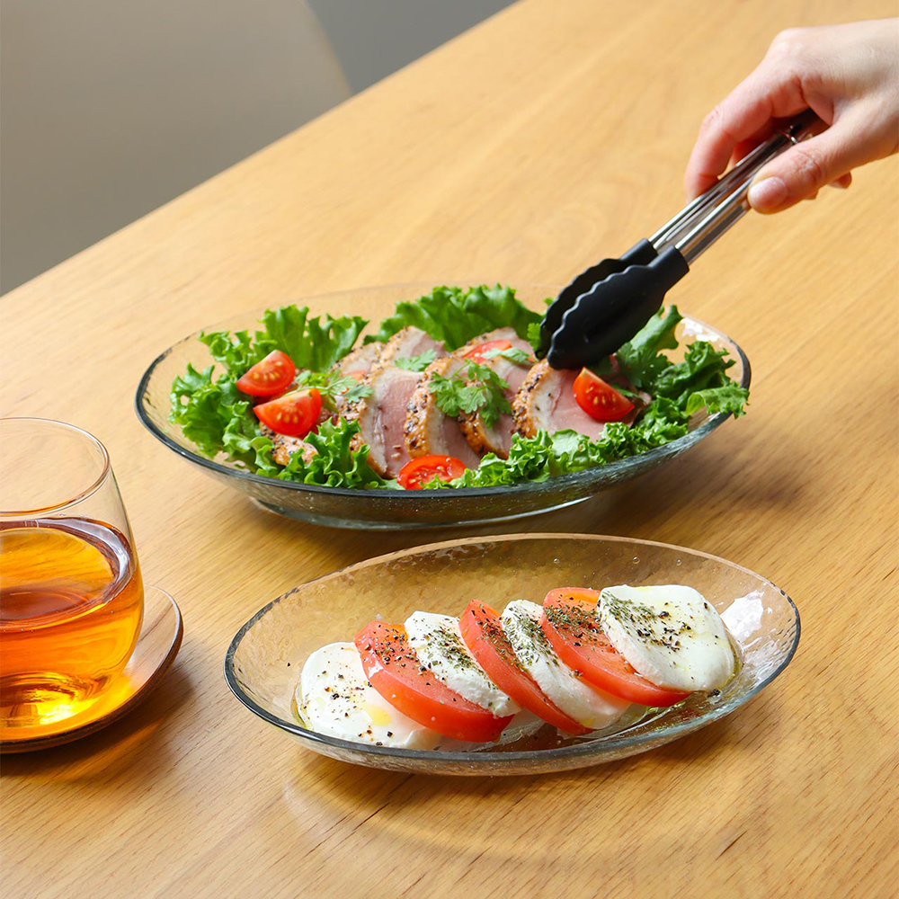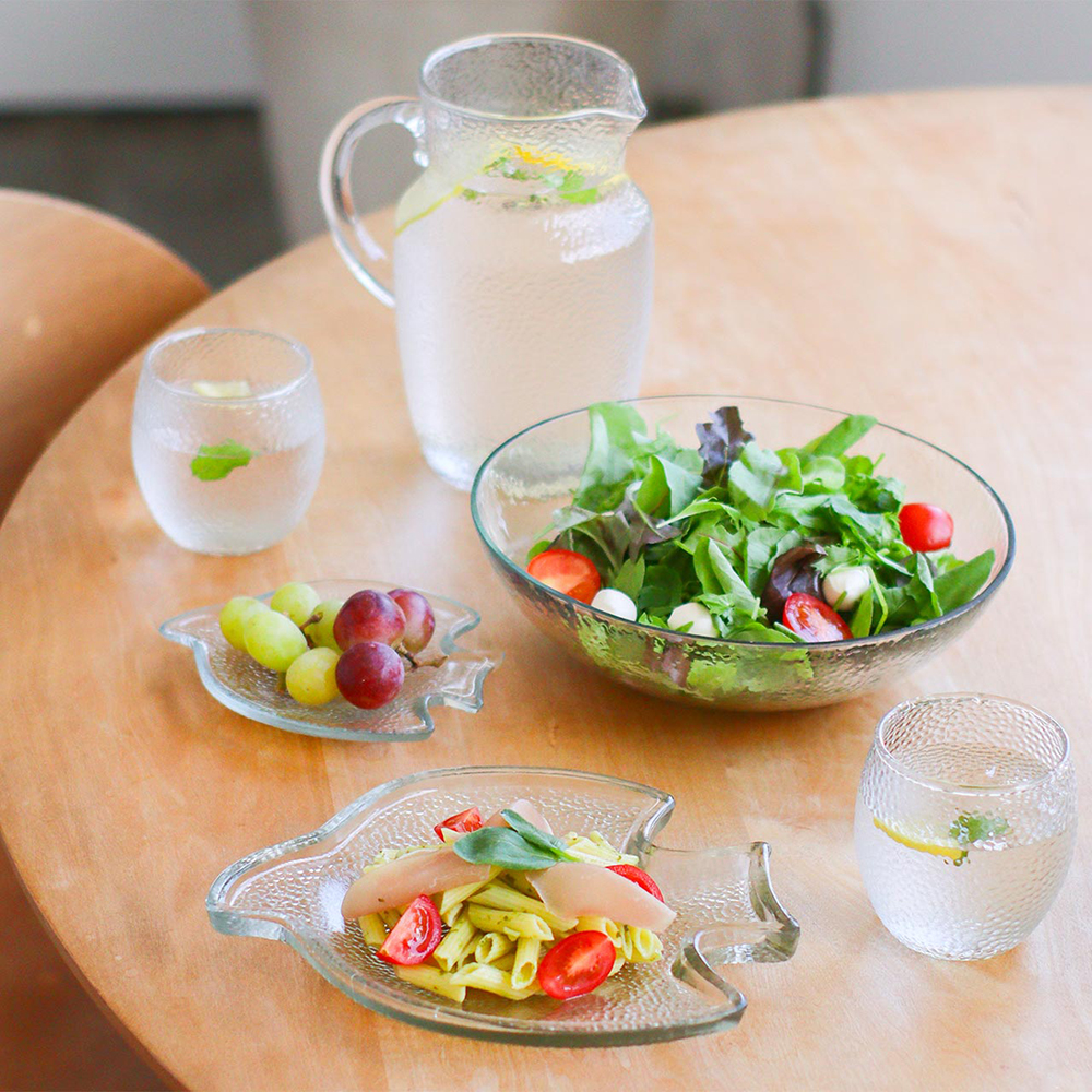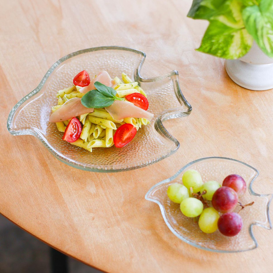 バードモチーフのガラスプレートは1枚でその存在感も大きく、ポップさもありながらナチュラルな素材感で大人かわいいバランスのテーブルウエアです。人気なシンプルガラスウエアとして、便利なオーバルタイプもご用意しました。