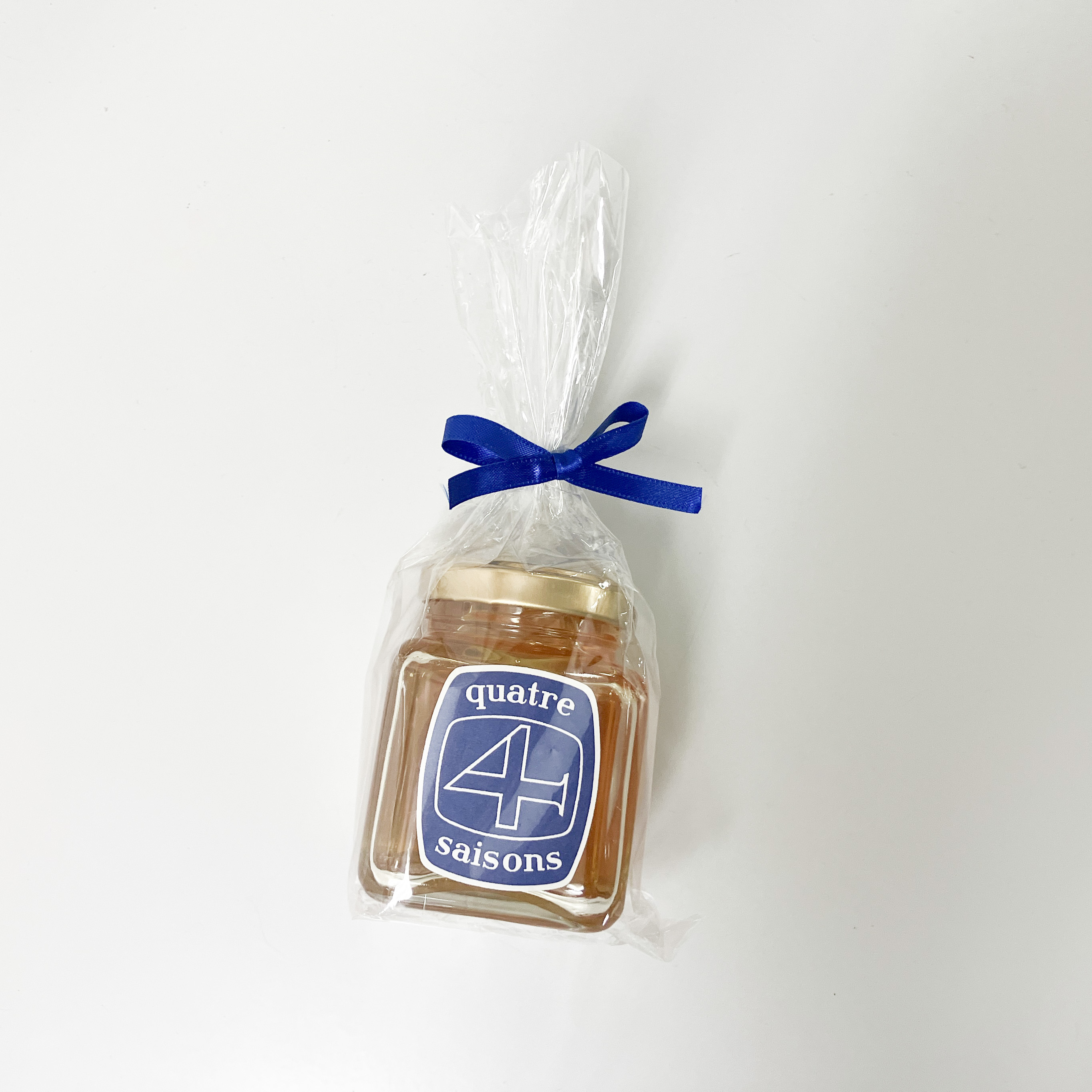 この春夏のキャトル・セゾンテーマカラー「Paris Bleu パリ・ブルー」を使った、リボンで包装してお届けします。